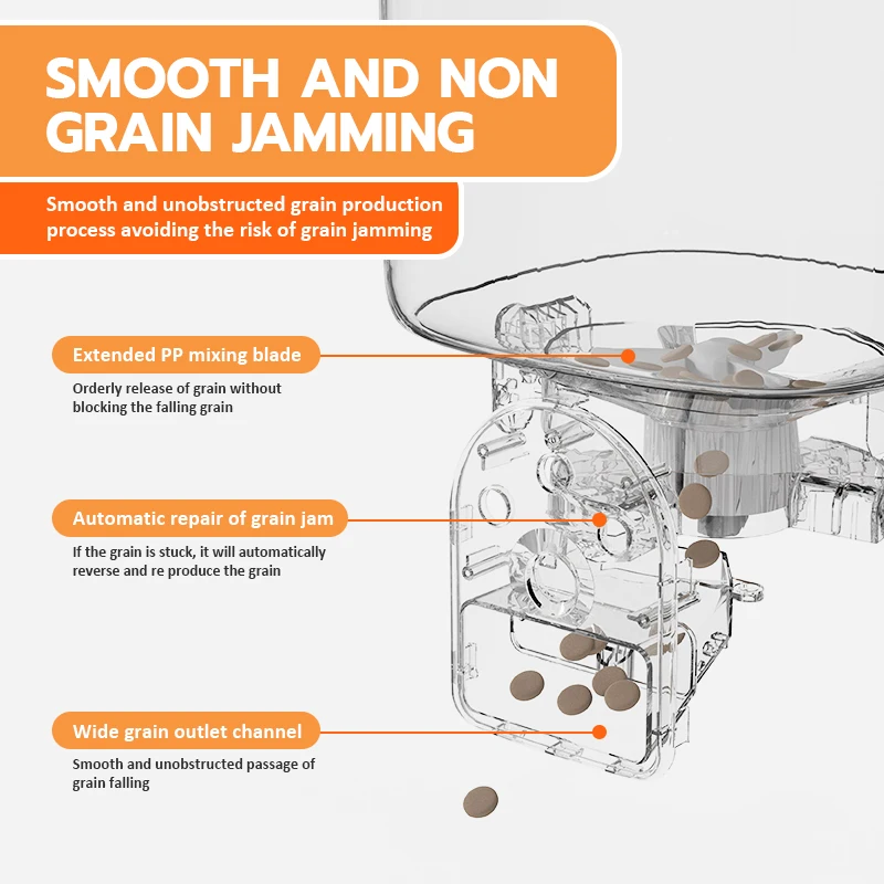 MULTIFUNCTION PANEL:Capable of achieving timed and quantitative intelligent control LARGE CAPACITY:Feeder Capacity 4.5LBucket Capacity 2.5L